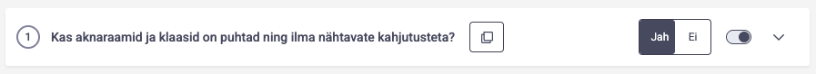 - Seejärel saad asuda ülevaatust täitma. Igat küsimust saab kopeerida (nupp peale küsimust) või valida kas see on ülevaatuse osa (sisse-välja nupp paremal ääres).